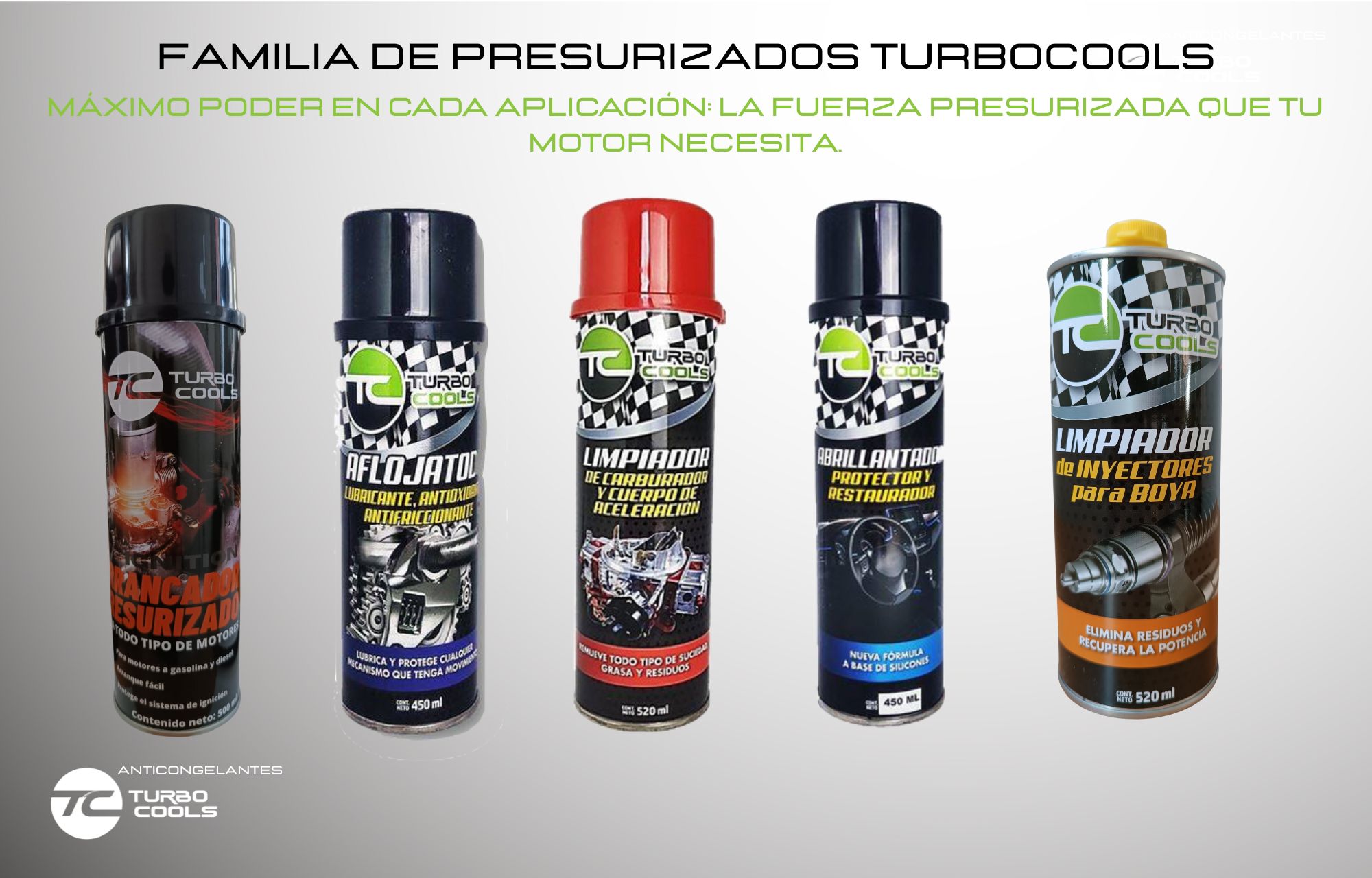 Línea de presurizados de uso profesional: aflojatodo, desengrasante, arrancador, abrillantador y limpiador de carburadores, listos para un mantenimiento rápido y eficaz.