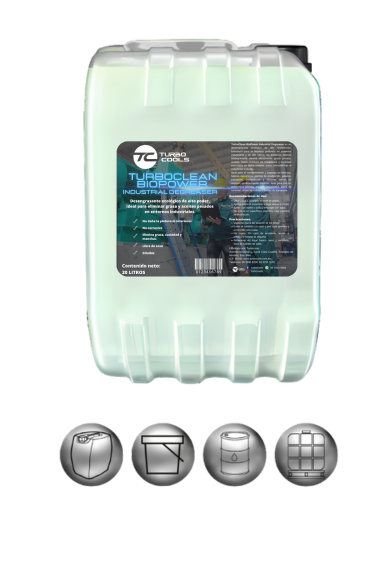 TURBOCLEAN BIOPOWER es un desengrasante industrial de alto desempeño, formulado para remover de manera eficaz grasa pesada, aceite quemado, lodos industriales y suciedad acumulada en maquinaria, equipos, pisos y superficies de uso rudo. Su fórmula biodegradable y de acción rápida está diseñada para cumplir con los estándares modernos de limpieza industrial, ofreciendo una solución poderosa, segura y amigable con el medio ambiente.